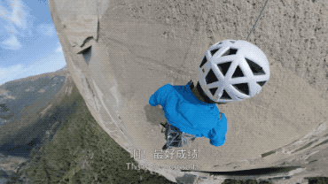 大岩壁上The Nose路段有幾處驚險的攀登難點,不同的豎直裂縫之間是光滑的平板,需要利用一種叫“擺盪”的方式平移過去進行後續攀爬。吳爭把ONE X固定在頭盔或者背包裡,完整記錄了這幾次的挑戰。